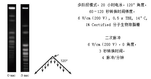 CHEF Mapper XA 系統(tǒng)能讓你選擇0°–360° 內(nèi)的任何脈沖角度,使你用一個系統(tǒng)就能完成染色體和質(zhì)粒DNA 的最佳分離。